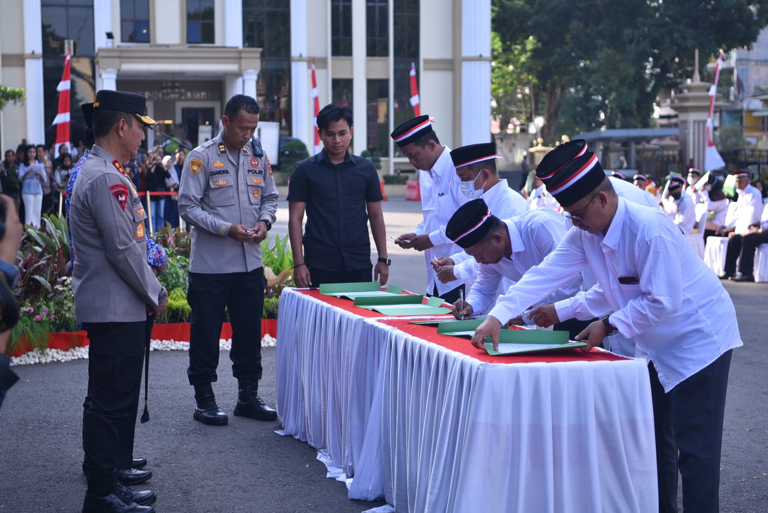 Jambi (WARTANEWS.CO) – Kegiatan Ikrar Setia NKRI Kelompok yang terafiliasi Negara Islam Indonesia (NII) di Provinsi Jambi dilaksanakan di Lapangan Mapolda Jambi, Kamis (25/7/24) sore.