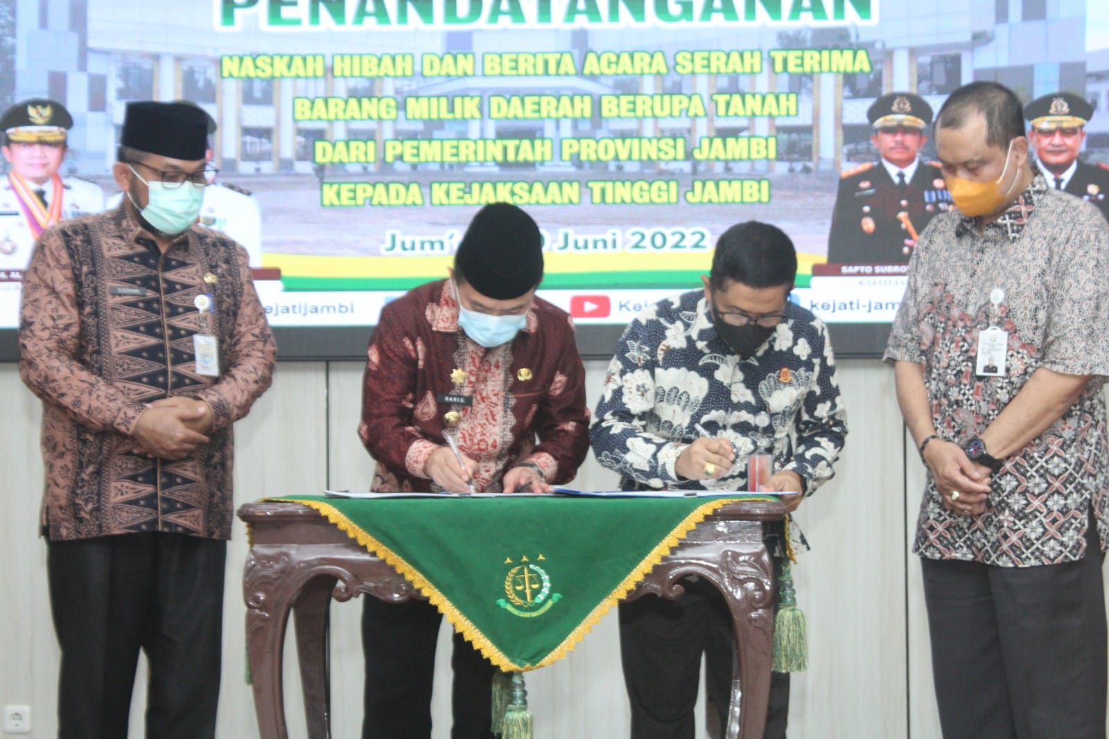 Pemerintah Provinsi Jambi menghibahkan Barang Milik Daerah (BMD) berupa Tanah Milik Pemerintah Provinsi Jambi kepada Kejaksaan Tinggi Jambi, dengan luas 16.980 M2 dengan nilai perolehan sebesar Rp.12.722.889.747.,- yang berlokasi di Jalan Hos Cokroaminoto nomor 29 Simpang Kawat Kelurahan Selamat Kecamatan Telanaipura, Jambi.
