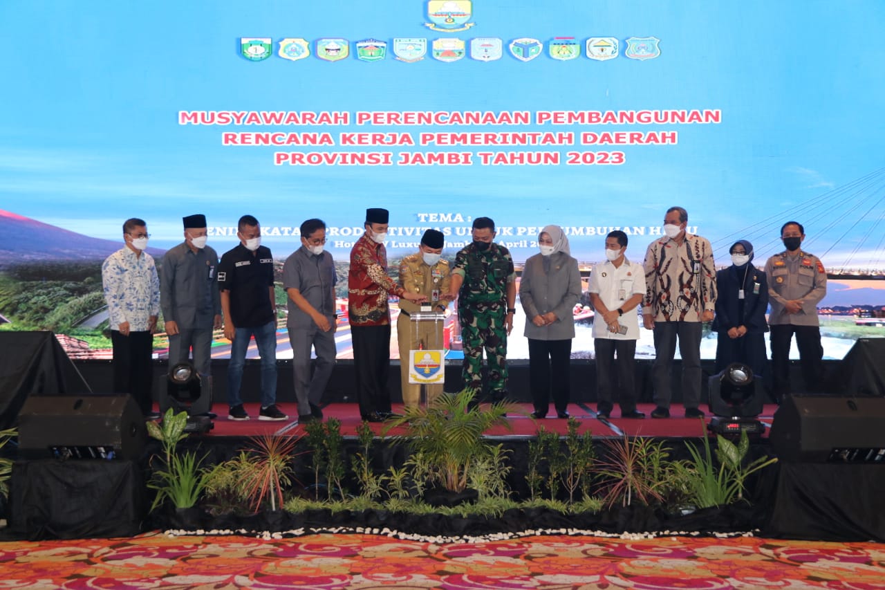 Al Haris menyampaikan, terdapat 3 (tiga) isu strategis yang diangkat untuk pembangunan Tahun 2023, yaitu pemantapan pemulihan ekonomi, ketimpangan antar wilayah dan ketenagakerjaan. Mengacu pada isu strategis dan RPJMD serta memperhatikan keselarasan tema dan prioritas RKP Tahun 2023 maka tema RKPD Provinsi Jambi Tahun 2023 adalah Peningkatan Produktivitas untuk Pertumbuhan Hijau, yang selanjutnya dijabarkan dalam 5 (lima) prioritas pembangunan daerah sebagai berikut: 1). Peningkatan Produktivitas Daerah; 2). Pembangunan Infrastruktur Daerah; 3). Pembangunan Manusia; 4)., Peningkatan Kualitas Lingkungan Hidup; dan 5) Peningkatan Tata kelola Pemerintahan.