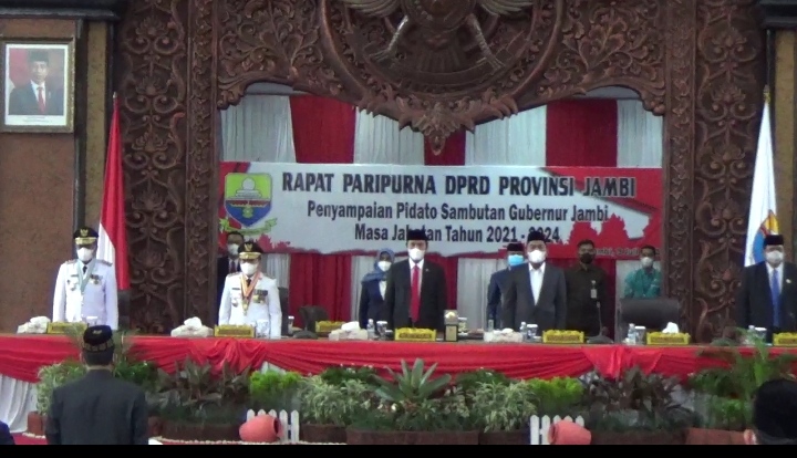 Acara Paripurna ini turut dihadiri oleh para kepala Forkopinda Provinsi Jambi, dan menerapkan protokol kesehatan secara ketat. (eco)