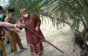 Bupati Masnah Panen Perdana Peremajaan Sawit Rakyat