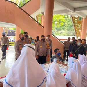 Kapolresta Jambi Dampingi Kapolda Jambi Tinjau Pelaksanaan Vaksinasi Merdeka Siginjai 2021 Di GOR Kota Baru Jambi