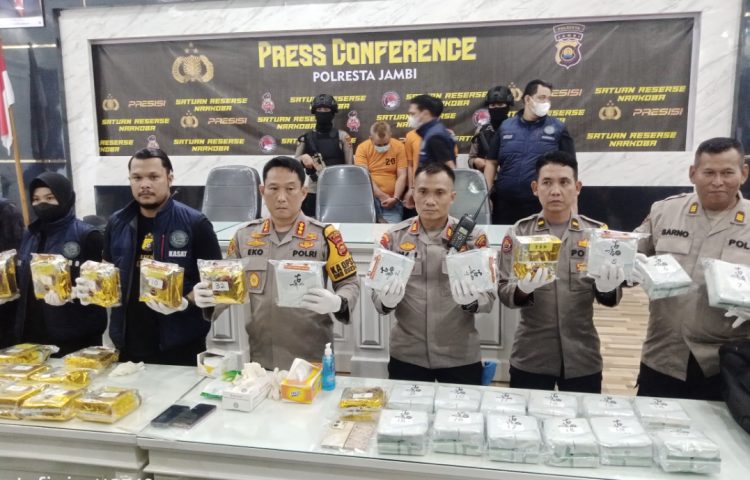 “Para pelaku dikenakan Pasal 114 ayat 2 atau 112 ayat 2 undang-undang RI nomor 35 Tahun 2009 tentang narkotika dengan ancaman pidana mati atau pidana seumur hidup. Dari pengungkapan, kami menduga ini adalah jaringan internasional. Pengungkapan ini menunjukkan komitmen Polri menindak tegas para pelaku dalam peredaran gelap narkoba, khususnya di kota Jambi,” tegas Eko Wahyudi.