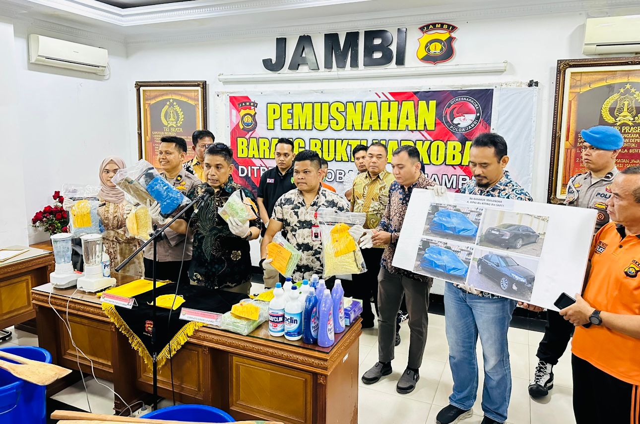 Kali ini, Ditresnarkoba Polda Jambi kembali memusnahkan hasil pengungkapan 4 Kilogram Sabu asal Pekanbaru menuju Palembang beberapa waktu lalu serta ribuan butir pil Extacy dengan nilai miliaran rupiah.