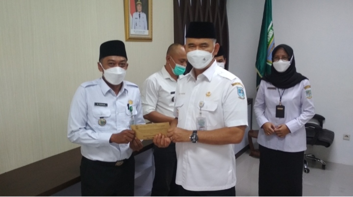Jambi (WARTANEWS.CO) – Bertempat di Gedung Kantor Bappeda Kota Jambi, Wali Kota Jambi Dr.H.Syarif Fasha, ME., didampingi Kepala BPPRD Nella Ervina, serahkan penghargaan kepada Camat dan Lurah yang telah berhasil merealisasikan serapan Pajak Bumi dan Bangunan (PBB) Kota Jambi hingga capaian 100 persen di tahun 2021.