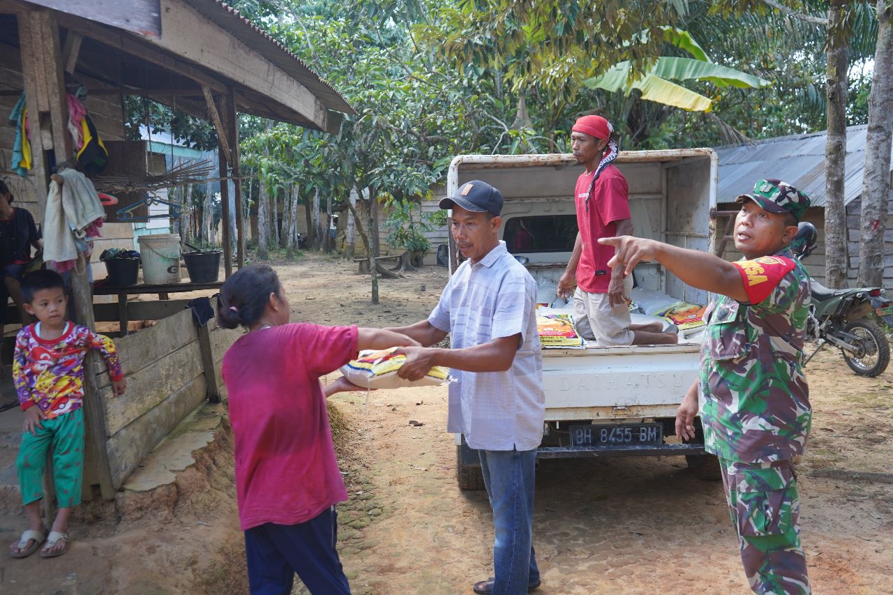 Pelda Tomy dengan mengandeng Bapak Legiyono yang dipanggil dengan Pakde Jono salah seorang Tokoh Masyarakat Desa Pompa Air Kec. Bejubang Kab. Batanghari pada hari Kamis ini (06/04) menyalurkan beras sebanyak 7 Ton kepada masyarakat desa binaannya.