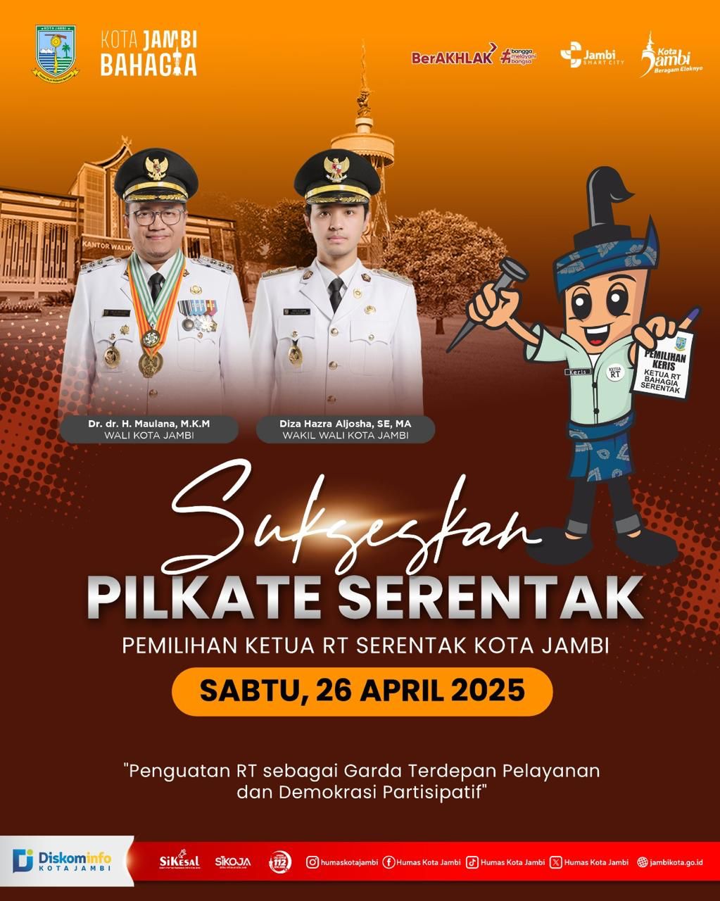“Pemilihan Ketua RT serentak ini adalah langkah progresif bapak Wali Kota Jambi untuk memperkuat RT sebagai pilar demokrasi partisipatif. Selain menjadi fondasi demokrasi lokal, ini adalah momentum kebersamaan untuk menumbuhkan semangat gotong royong dan kepedulian warga terhadap lingkungannya,” jelasnya.