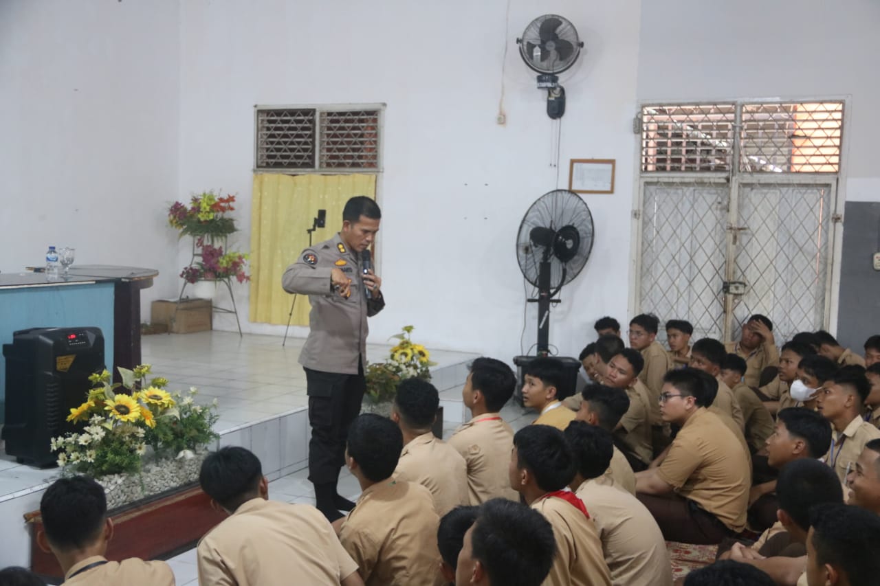 Bertempat di Aula sekolah, Kasubbid Multimedia Bidhumas Polda Jambi AKBP Wirmanto Dinata menyampaikan materinya yang berjudul Bijak Dalam Bermedia Sosial kepada 400 siswa yang hadir pada kegiatan pengenalan lingkungan sekolah.
