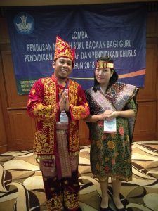“50 orang guru, yang menjadi peserta lomba kali ini, termasuk saya. Juga saya, satu-satunya yang mewakili Provinsi Jambi dari utusan Kota Jambi ke tingkat nasional. Syukur, Alhamdulillah, akhirnya berhasil memperoleh peringkat keempat nasional dalam lomba penulisan naskah buku bacaan bagi guru-guru pendidikan menengah dan pendidikan khusus tahun 2018,” ungkapnya.
