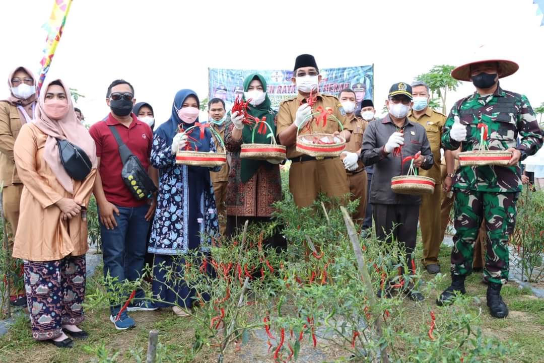 BETARA (WARTANEWS.CO) – Bupati Tanjab Barat Drs H Anwar Sadat, M.Ag bersama Ketua DPRD Tanjab Barat Abdullah, SE, Dandim O419/ Tanjab Letkol Inf Erwan Susanto, S.IP, Ketua TP-PKK Tanjab Barat Hj Umi Fadilah Sadat melakukan panen raya cabai merah di Desa Lubuk Terentang, Kecamatan Betara, Selasa (18/01).
