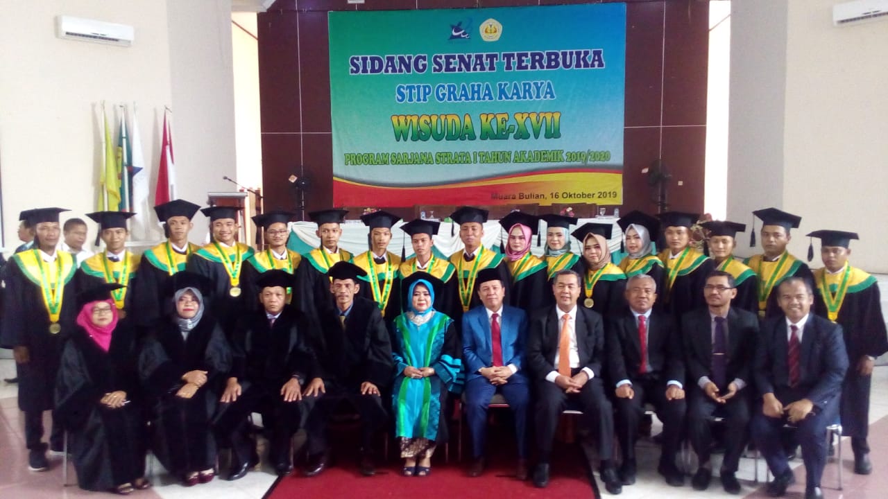 Acara dilanjutkan dengan pengukuhan 45 orang wisudawan/ti STIP-GK YP-SBR Muara Bulian dan dilanjutkan dengan foto bersama. (Aspin)