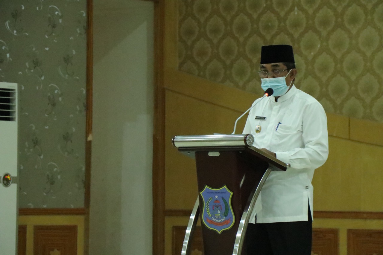 Dalam sambutannya, Bupati mengatakan situasi Covid-19 di tingkat global maupun nasional masih sangat tinggi, bahkan Kabupaten Tanjab Barat pernah berada di zona merah, dan alhamdulillah saat ini sudah memasuki zona oranye.