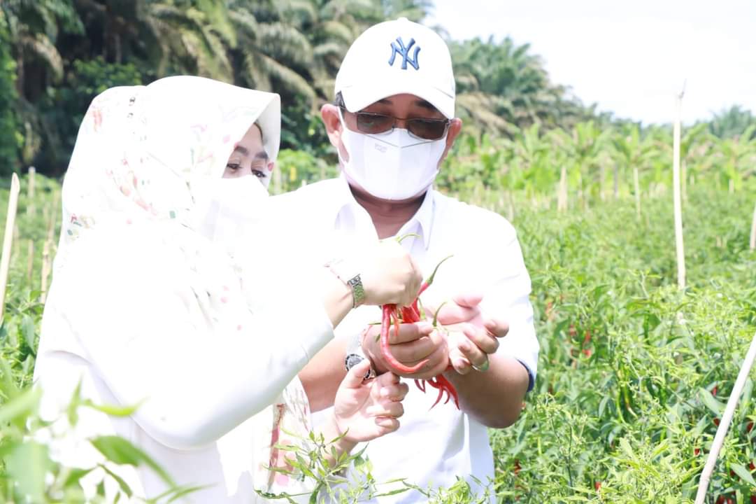 TEBING TINGGI (WARTANEWS.CO) – Bupati Tanjab Barat, Drs H Anwar Sadat, M.Ag didampingi Ketua TP-PKK Tanjab Barat, Hj Fadhilah Sadat melakukan panen cabai perdana di Balai Penyuluh Pertanian bersama petani milenial di Kecamatan Tebing Tinggi, Rabu (09/03).