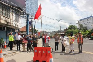 Seluruh Pengendara Berdiri Disamping Kendaraan Berikan Hormat Serta Menyanyikan Lagu Indonesia Raya
