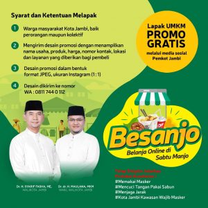 Jambi (WARTANEWS.CO) – Wali Kota Jambi H. Syarif Fasha kembali melahirkan program Inovasi BESANJO (Belanja [ Selengkapnya ]