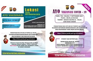 Jambi (WARTANEWS.CO) – Kepolisian Daerah (Polda) Jambi pada hari Selasa (7/9/2021) besok, kembali mengadakan vaksinasi [ Selengkapnya ]