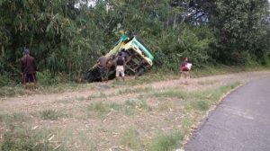 Truk Pembawa Pupuk 10 Ton Terbalik