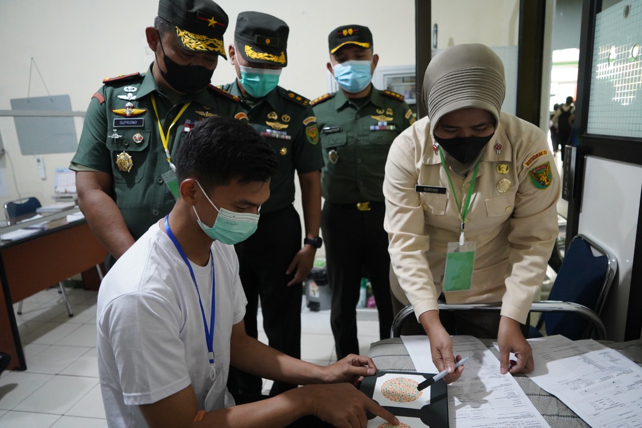 JAMBI (WARTANEWS.CO) – Bertempat di Rumkit TK. III Dr Bratanata, Jalan Rd, Mataher Kota Jambi ,pada hari Rabu, tanggal 2 Oktober 2022, Komandan Korem 042/Gapu Brigjen TNI Supriono, S.IP., M.M., memantau langsung pelaksanaan tes kesehatan bagi para calon Perwira Prajurit Karier (PA PK) TNI TA 2022.