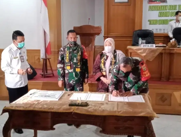 Pantauan dilapangan saat upacara penutupan, Danrem 042/Gapu menerima laporan hasil pelaksanaan kegiatan TMMD ke 110 dari Dansatgas TMMD Kolonel Inf J Hadiyanto serta penandatanganan Naskah Serah Terima Pelaksanaan TMMD ke 110 dari Dansatgas kepada Bupati Muarojambi serta dilanjutkan Penandatangan Prasasti Tugu TMMD.