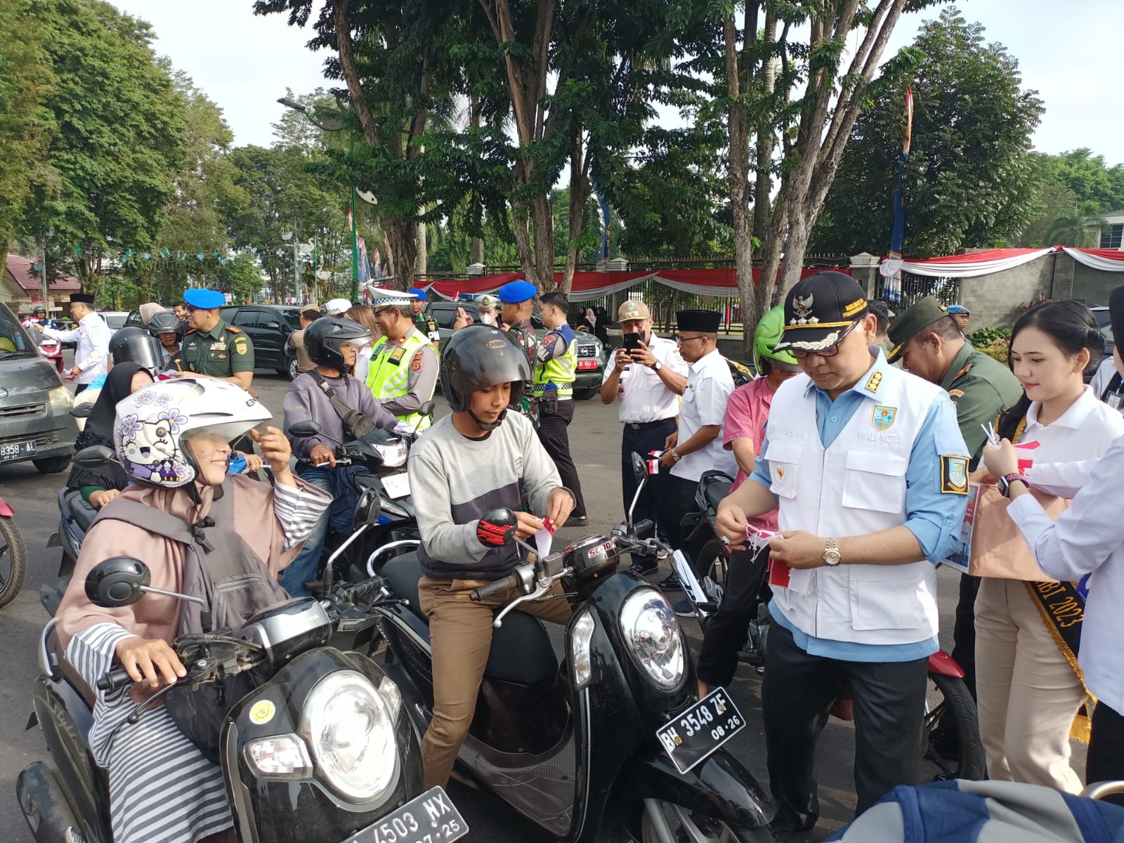 Jambi (WARTANEWS.CO) – Menyambut hari kemerdekaan Republik Indonesia (RI) ke 78 tahun 2023, Pemerintah Kota (Pemkot) Jambi yang di Komandoi oleh Wali Kota Jambi H. Syarif Fasha, bersama Forkopimda membagikan bendera secara gratis kepada para pengendara motor dan mobil dikawasan Tugu Keris Siginjai, Rabu (09/08) pagi.