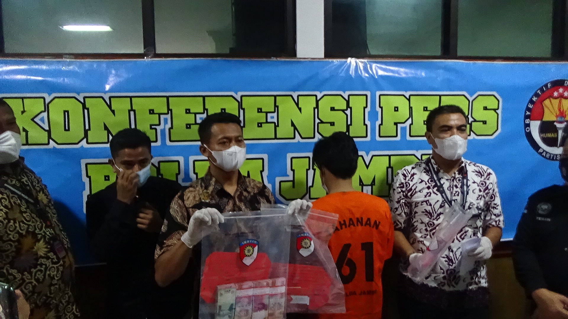 Dalam keterangan nya Komisaris Besar Polisi Sigit Dany Setiyono,SH,.S.I.K.,M.Sc. Eng, saat ini Dirreskrimsus Polda Jambi telah mendapatkan sejumlah barang bukti berupa handphone, simcard, buku tabungan serta uang tunai dengan nominal Rp 39.847.000,-.