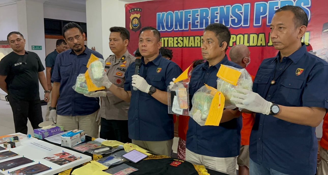 Hal ini disampaikan langsung oleh, Dirresnarkoba Polda Jambi, AKBP Ernesto Saiser didampingi Wadir AKBP Andi M Ichsan, Kasubdit I Kompol Yuda Lesmana, Kasubdit II AKBP Nurbani dan Kasubbid Penmas Kompol Amin Nasution saat menggelar konferensi Pers di Mapolda Jambi, Selasa (11/6/24).
