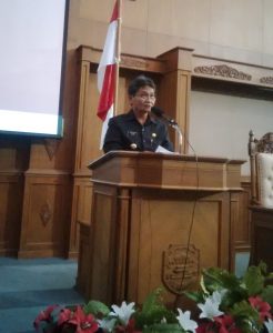 Rapat paripurna diakhiri dengan penyerahan Laporan Keterangan pertanggung jawaban Bupati tahun 2011-2016, oleh Pj Bupati Kailani, ke Ketua DPRD Muaro Jambi Salma Mahir. (aji)