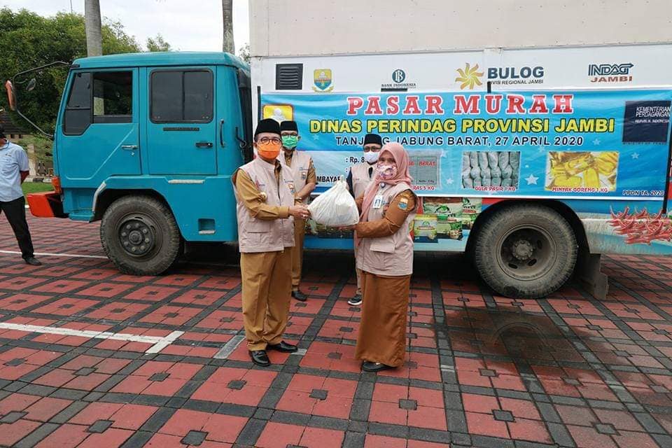 Pasar murah sembako bersubsidi yang digelar Pemerintah Provinsi Jambi melalui Dinas Perindustrian dan Perdagangan bekerja sama dengan Bulog Divisi Regional (Divre) Jambi ini merupakan uapaya Pemerintah Provinsi Jambi untuk membantu masyarakat yang terdampak Covid-19.