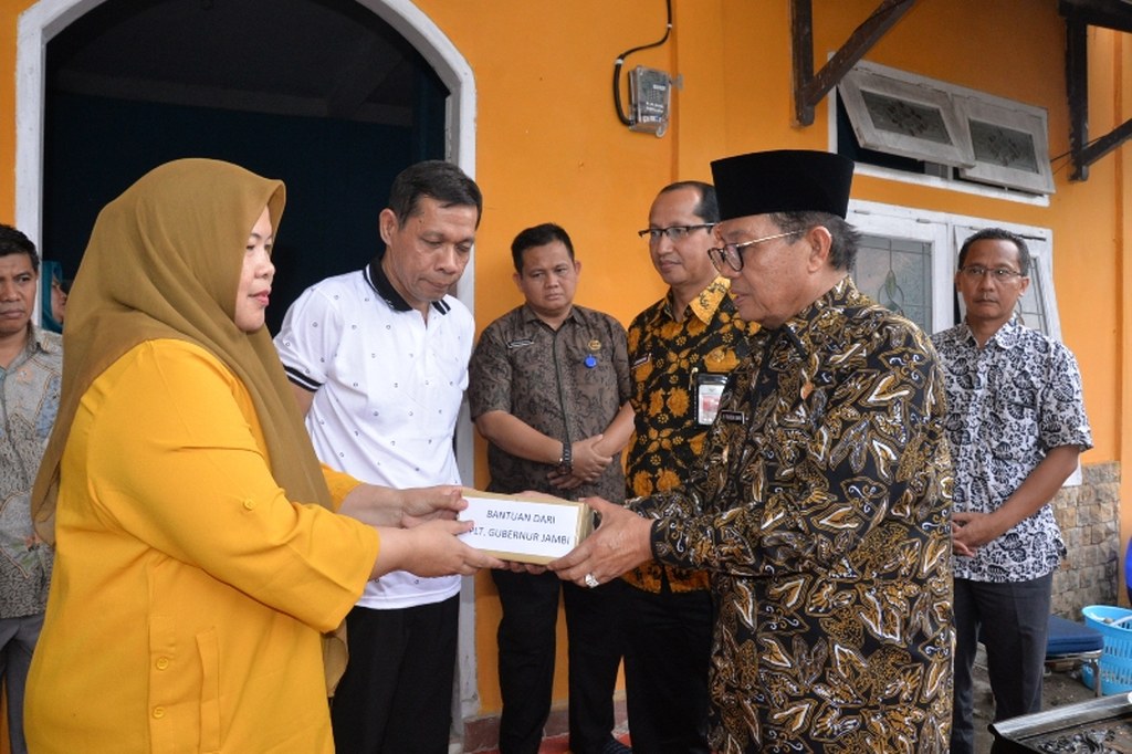 Kedatangan Plt. Gubernur dan rombongan disambut langsung oleh pemilik rumah, Aziz Muslim yang merupakan Kepala Kesbangpol Kabupaten Tanjung Jabung Barat dan istrinya, Luthpiah, Kepala Dinas Pemberdayaan Perempuan Perlindungan Anak dan Pengendalian Penduduk Provinsi Jambi. Plt. Gubernur datang untuk menyampaikan turut berempati atas musibah kebakaran yang menimpa rumah Aziz Muslim dan Luthpiah.