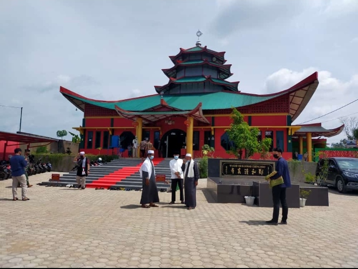 Jambi (WARTANEWS.CO) – Merupakan salah satu icon destinasi religi wilayah Jambi, Walikota Jambi Dr.H.Syarif Fasha, siang ini melaksanakan sholat jum’at berjamaah di Masjid Laksamana Cheng Hoo, (04/6).