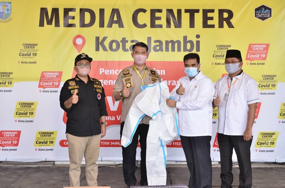 JAMBI (WARTANEWS.CO) – Wali Kota Jambi didampingi Wawako dan Ketua DPRD Kota Jambi terima bantuan APD dan peralatan lain untuk percepatan penanganan Covid-19 di Kota Jambi dari Bapak Ir. H.A.R. Sutan Adil Hendra, MM, Anggota Komisi IX DPR RI, bertempat di Command Center Gugus Tugas Percepatan Penanganan Covid-19 Kota Jambi, Mako Damkar dan Penyelamatan Kota Jambi, Jumat (29/5).