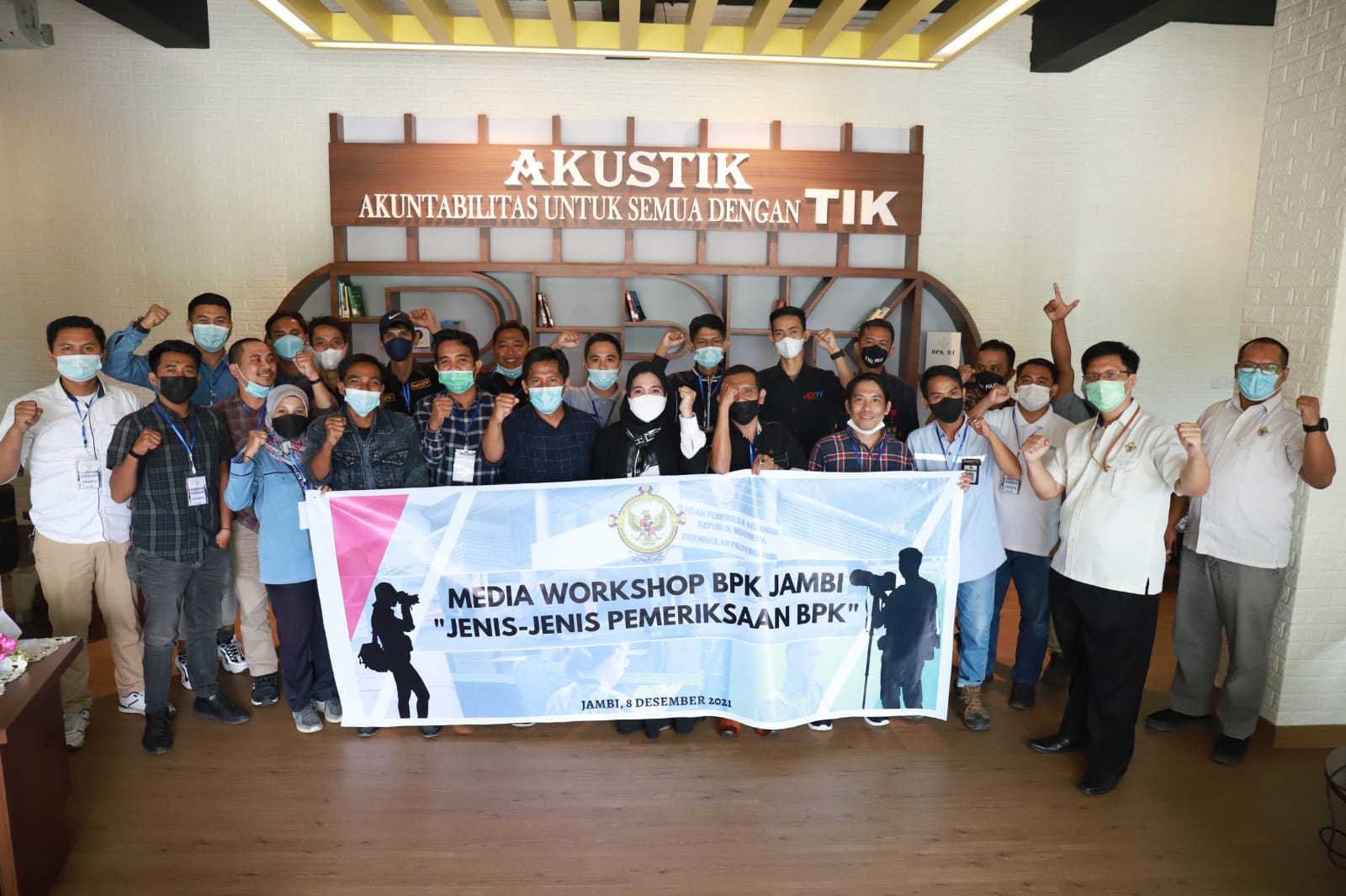 BPK kepada media massa, Badan Pemeriksa Keuangan (BPK) Perwakilan Provinsi Jambi menyelenggarakan kegiatan Media Workshop dengan tema “Pemeriksaan di BPK”. Bertempat di Ruang AkUSTIK (Akuntabilitas untuk Semua dengan TIK), Rabu (08/12/2021).