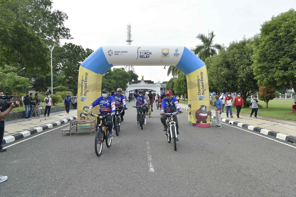 Kegiatan Gowes Virtual dilepas oleh Sekretaris Daerah (Sekda) Provinsi Jambi H. Sudirman, SH, MH, start di Pondopo Rumah Adat Kantor Gubernur Jambi, Jumat (8/1) pagi.
