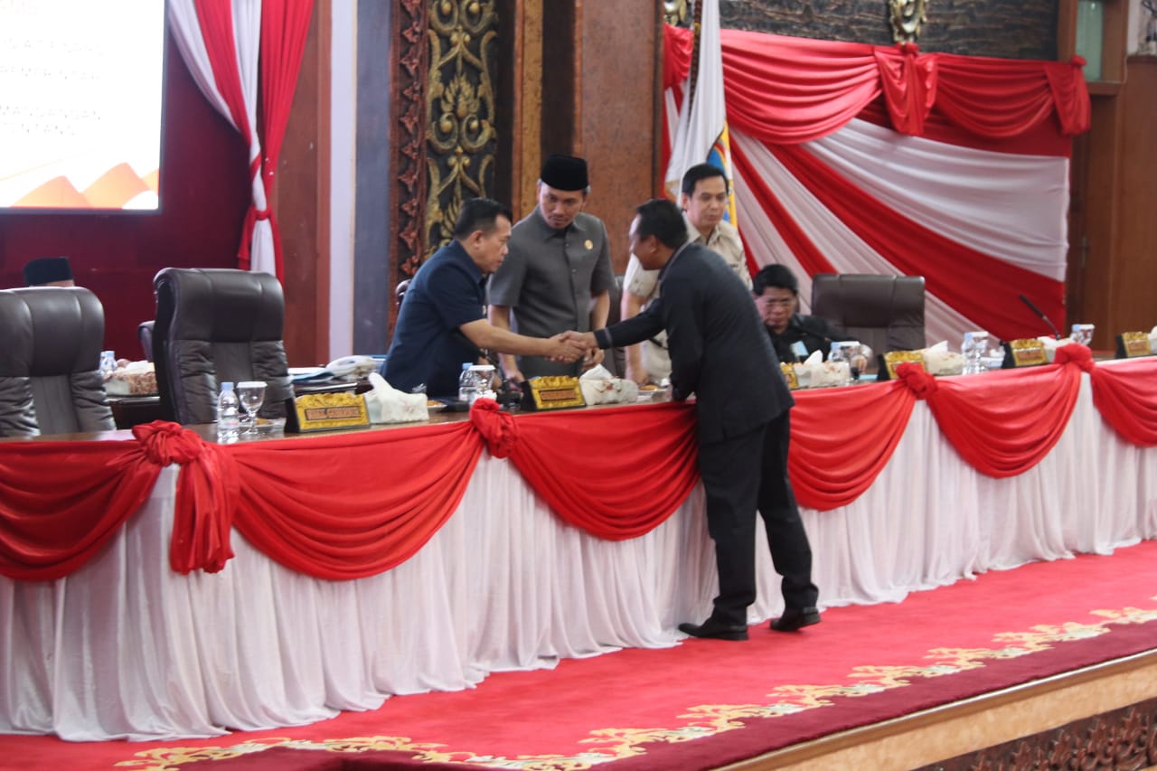 Sidang Paripurna ini dipimpin langsung Ketua DPRD Edi Purwanto dan Wakil Ketua DPRD Faizal Riza dan Burhanuddin Mahir.
