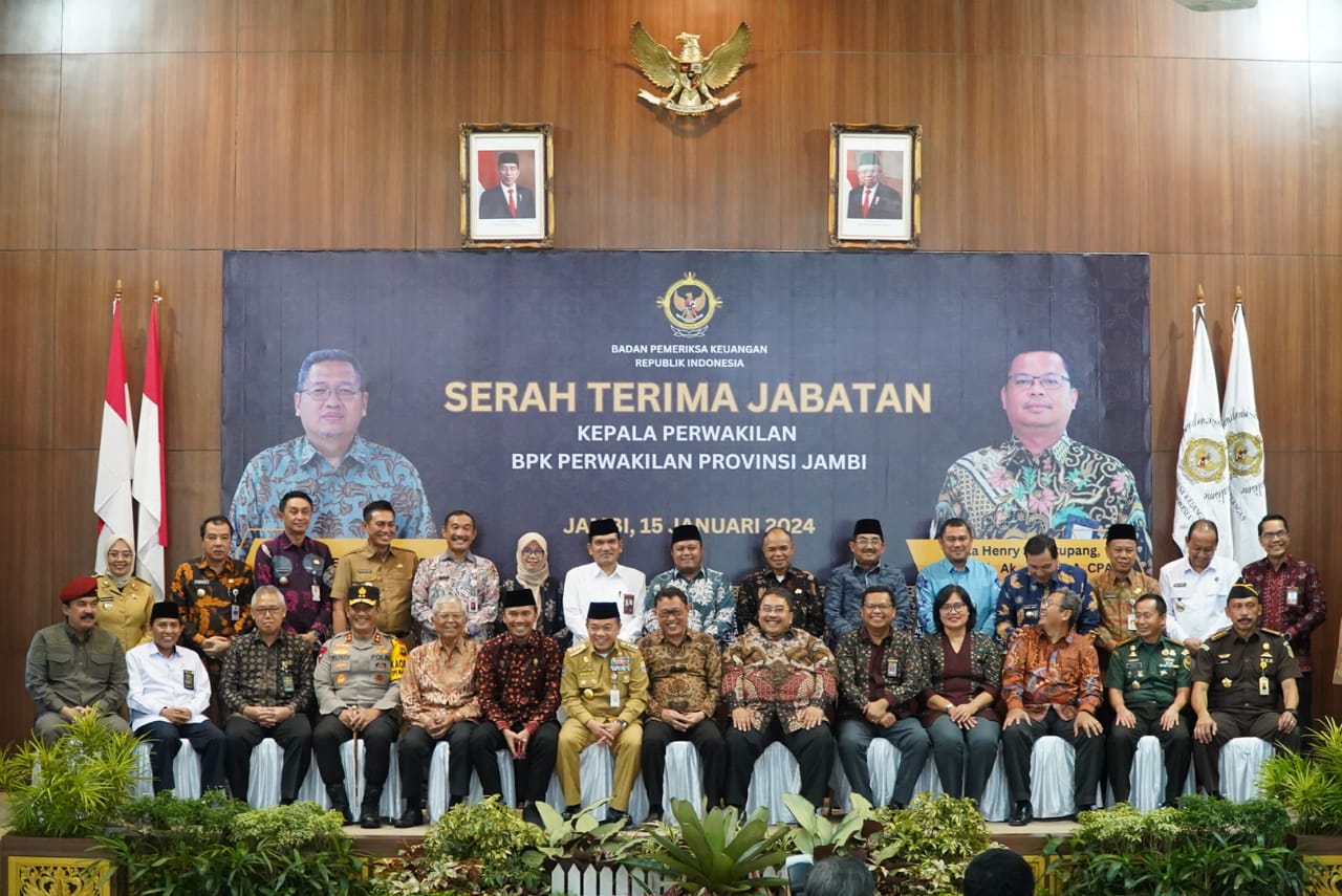 Jambi (WARTANEWS.CO) – Gubernur Jambi Dr. H. Al Haris, S.Sos. MH mengharapkan sinergi dan koordinasi serta komunikasi Pemerintah Provinsi (Pemprov) Jambi dengan Badan Pemeriksa Keuangan (BPK) RI Perwakilan Jambi terus ditingkatkan dan terjalin dengan baik. Harapan tersebut disampaikan Gubernur saat menghadiri Serah Terima Jabatan (Sertijab) Kepala Perwakilan Badan Pemeriksa Keuangan (BPK) Perwakilan Provinsi Jambi, dari Kepala Perwakilan BPK Perwakilan Provinsi Jambi yang Lama, Rio Tirta,S.E.,M.Acc.,CSFA kepada Kepala Perwakilan BPK Perwakilan Provinsi Jambi yang baru Paula Henry Simatupang, S.E., M.Si., Ak., CA., CFrA., CPA. (Aust), CSFA., ACPA, bertempat di Auditorium BPK Perwakilan Provinsi Jambi, Senin (15/01/2024).