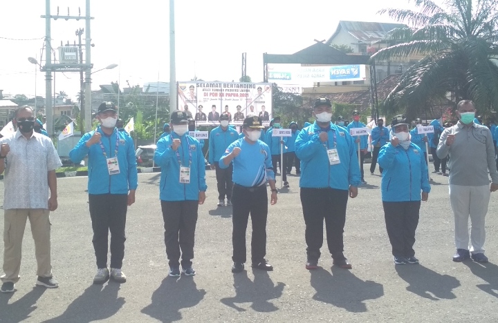 Jambi (WARTANEWS.CO) – Gubernur Jambi Dr.H.Al Haris secara langsung melepas 101 atlet dan 30 pelatih Kontingen Provinsi Jambi yang akan bertanding dalam Pekan Olahraga Nasional (PON) XX di Papua, betempat di Koni Provinsi Jambi, Sabtu (11/09).