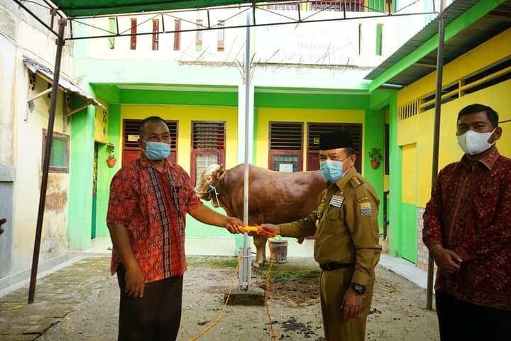 Jambi (WARTANEWS.CO) – Dalam rangka Hari Raya Idul Adha 1442 H, Gubernur Jambi Dr.Al Haris, S.Sos,M.H. menyerahkan hewan kurban kepada pengurus Mesjid Al Falah Kota Jambi.