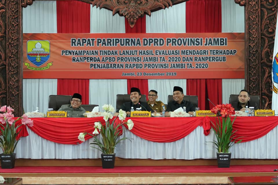 JAMBI (WARTANEWS.CO) – Gubernur Jambi Dr.Drs.H.Fachrori Umar, M.Hum, menghadiri Rapat Paripurna DPRD Provinsi Jambi dalam rangka Laporan Badan Anggaran DPRD Provinsi Jambi terhadap Evaluasi Rancangan Peraturan Daerah Provinsi Jambi tentang APBD Provinsi Jambi Tahun Anggaran 2020, di Ruang Rapat Utama Gedung DPRD Provinsi Jambi, Senin (23/12/19).
