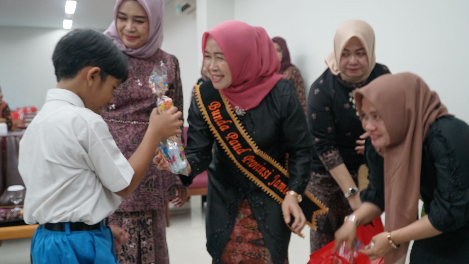 Kedatangan Bunda PAUD Provinsi Jambi ke sekolah tersebut disambut dengan kegembiraan oleh anak-anak dalam gerak dan tari, selain itu para siswa juga mempersembahkan tarian dan lagu.