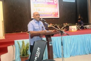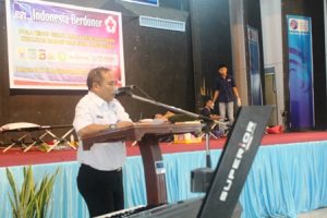 Kepala RRI Jambi Rasman saat memberikan sambutan menyatakan RRI sebagai Rumah Rakyat Indonesia bekerjasama dengan PMI menjadi media para pendonor melaksanakan donor darah
