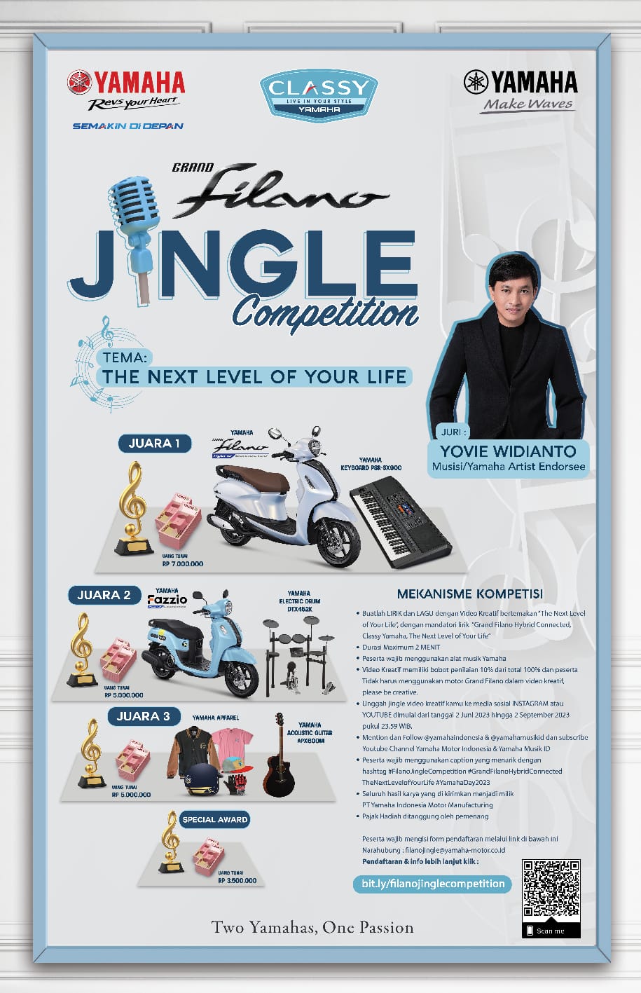 - Peserta wajib menggunakan caption yang menarik dengan hashtag #FilanoJingleCompetition #GrandFilanoHybridConnected #TheNextLevelofYourLife #YamahaDay2023