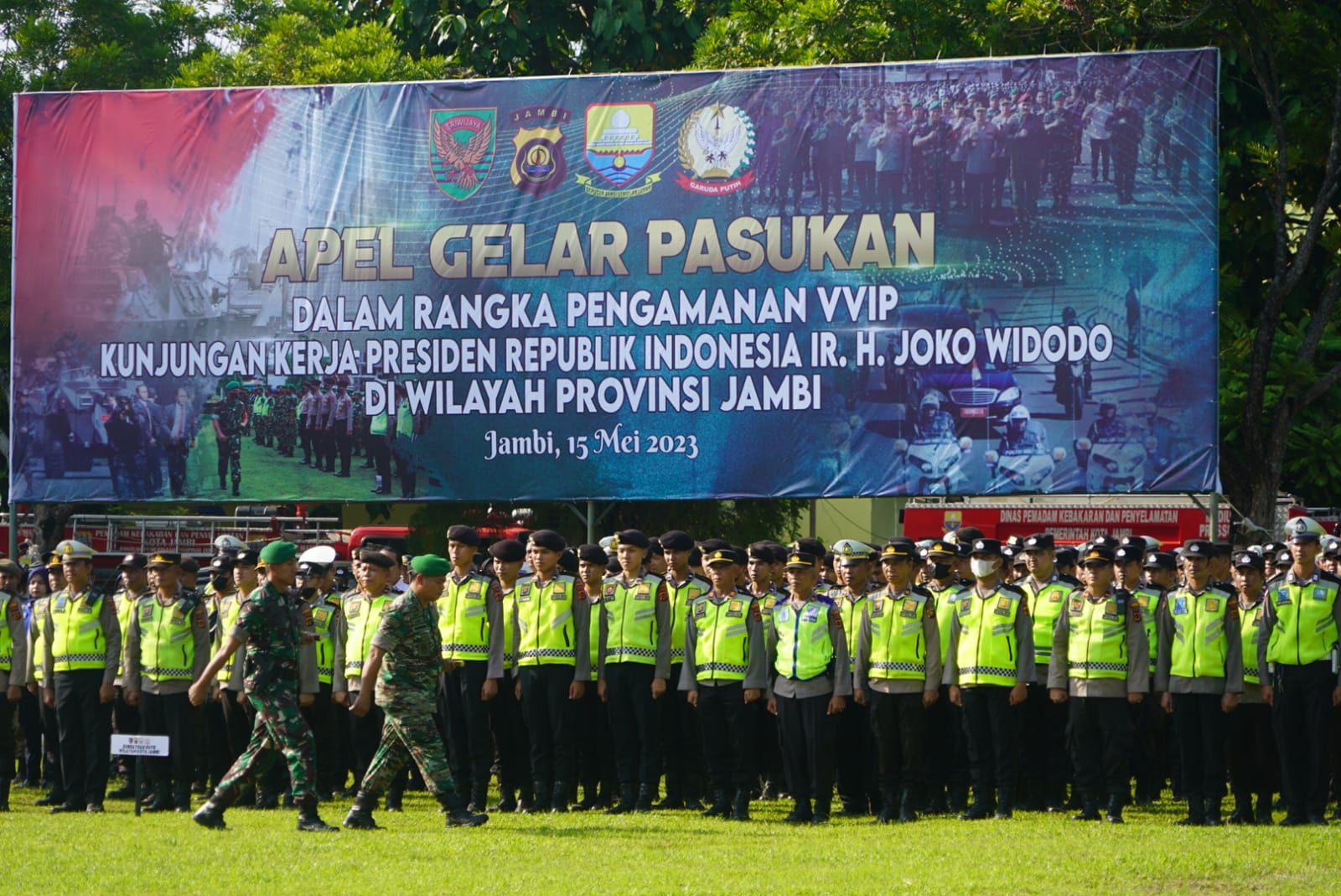 Apel gelar dilaksanakan dalam rangka kesiapan pengamanan rencana kunjungan kerja Presiden Republik Indonesia Ir. Joko Widodo yang akan dilaksanakan pada Selasa (16/5/2023) di Provinsi Jambi.