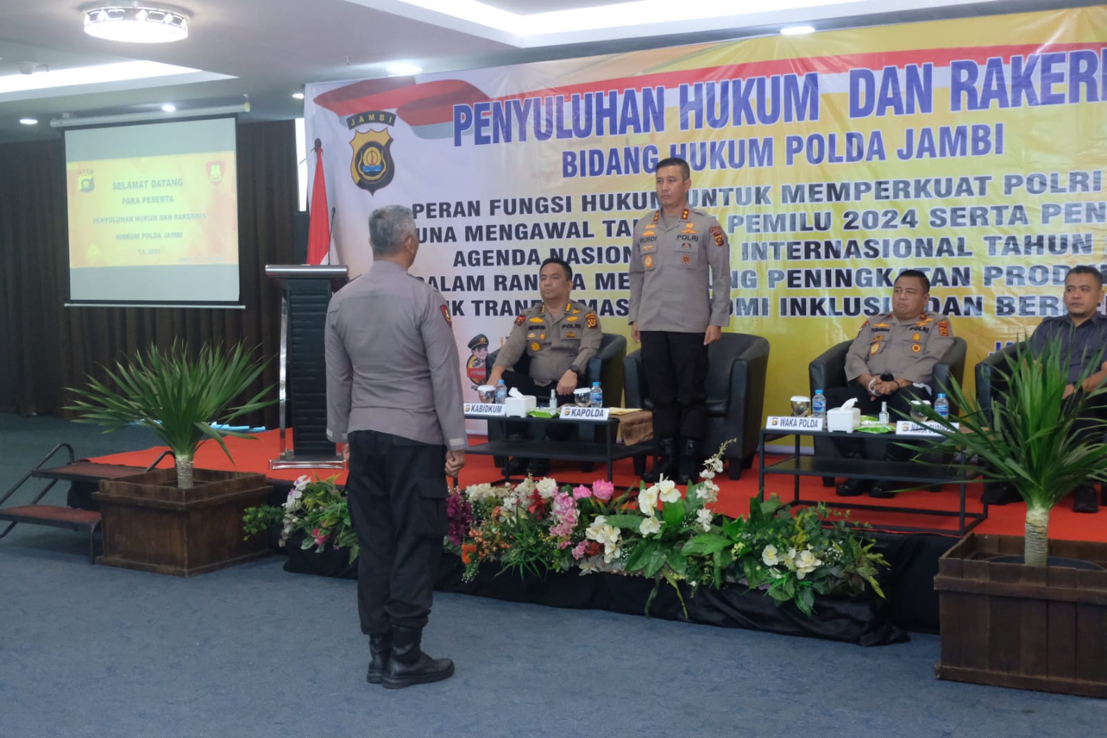 Pada kesempatan tersebut, Kapolda Jambi menyampaikan amanatnya kepada peserta rakernis dan penyuluhan hukum, agar selalu menegakkan norma-norma hukum.