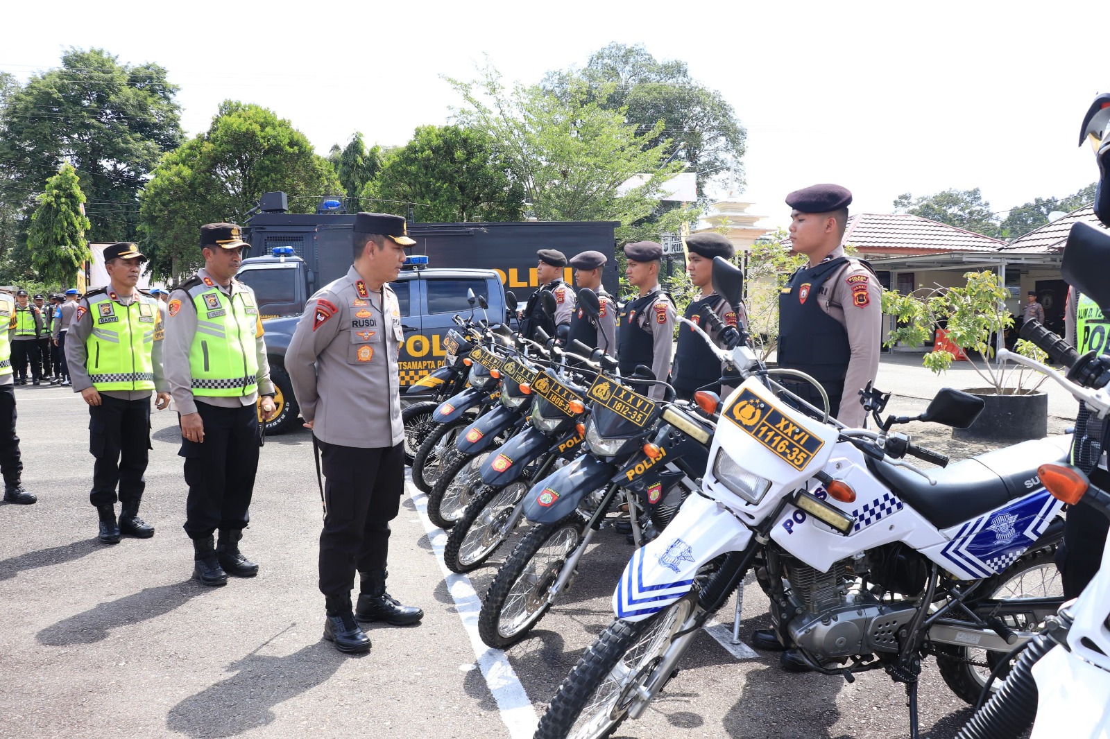 Setiba di Polres Tebo Kapolda Jambi langsung melakukan pengecekan personel, pengecekan Posko Operasi Mantap Praja Siginjai 2024 Polres Tebo denga di dampingi oleh Kapolres Tebo AKBP I Wayan Arta Ariawan beserta PJU Polres Tebo.