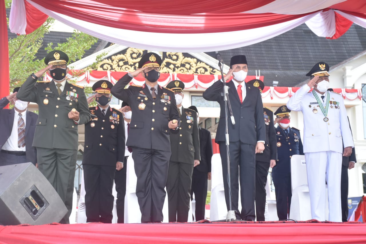 Jambi (WARTANEWS.CO) – Kapolda Jambi, Irjen Pol A Rachmad Wibowo, SIk bersama Ibu Ketua Bhayangkari Daerah Jambi Ny. Evi Rachmad Wibowo menghadiri Upacara HUT RI ke-76 di lapangan kantor Gubernur Jambi, Selasa (17/8/2021) pagi.