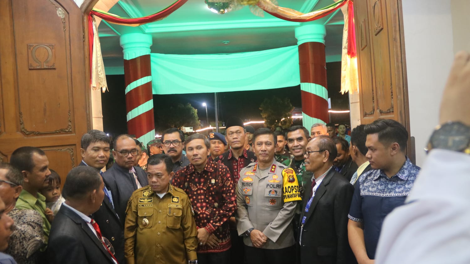 Jambi (WARTANEWS.CO) – Kapolda Jambi Irjen Pol Rusdi Hartono bersama Gubernur Jambi Al Haris, Ketua DPRD Provinsi Jambi Edi Purwanto, Danrem 042 Gapu Brigjen TNI Rachmad, Kabinda Jambi beserta Forkopimda Provinsi Jambi meninjau langsung pelaksanaan Malam Misa Natal di beberapa Gereja yang ada di Kota Jambi, Minggu (24/12/23) malam.