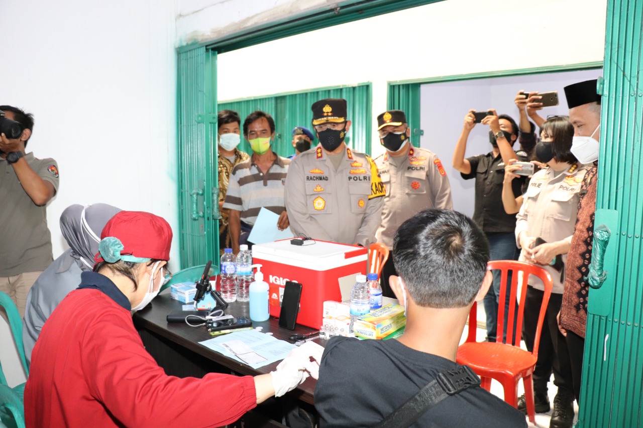Jambi (WARTANEWS.CO) – Kapolda Jambi Irjen Pol A Rachmad Wibowo SIk memantau langsung jalannya Vaksinasi Massal Tahap I dan Tahap II yang berlangsung di Pasar Rakyat Angsoduo, Telanai Pura, Kamis (12/8/21).