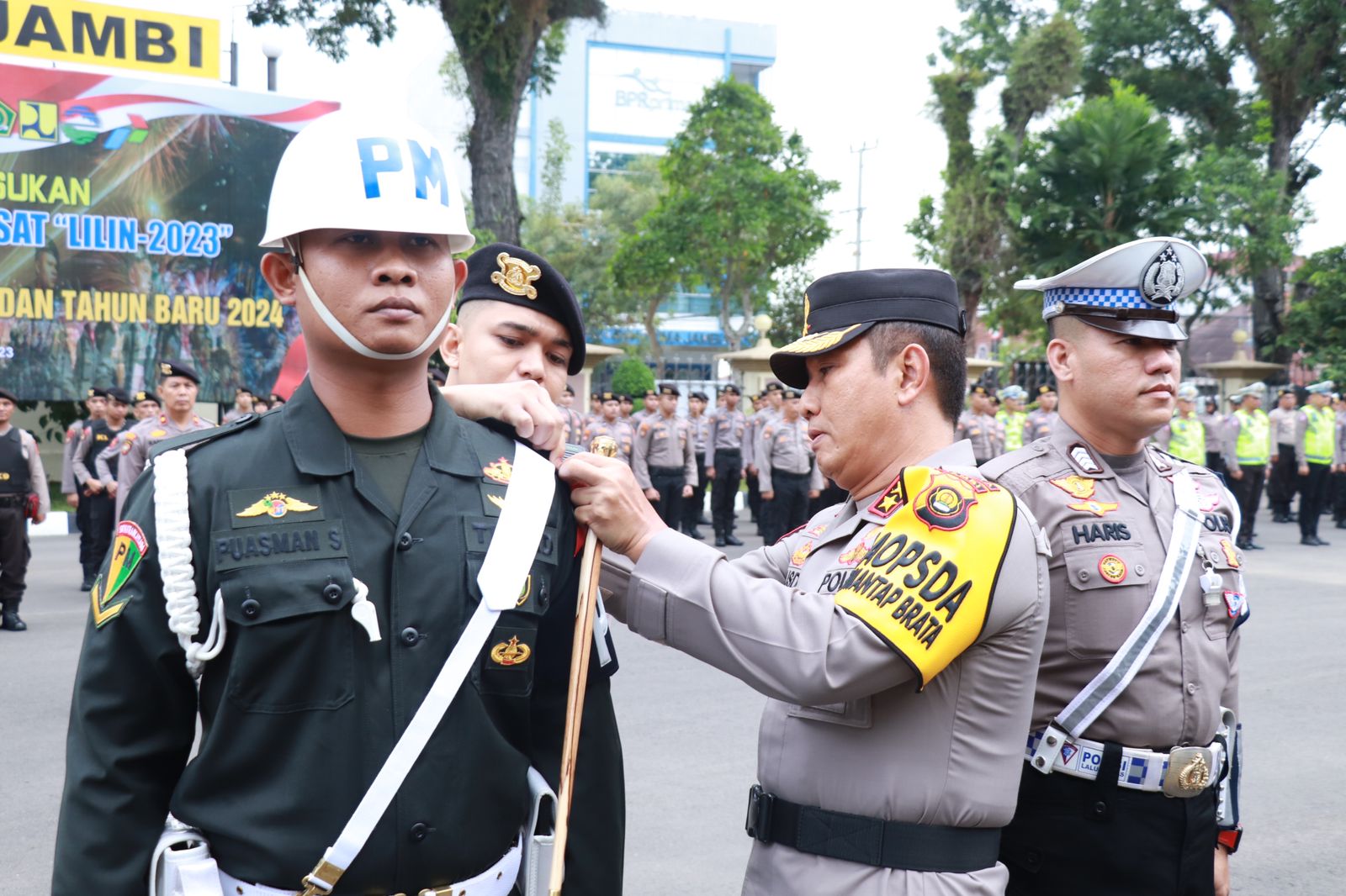 Apel Gelar Pasukan Operasi Kepolisian pengamanan Natal 2023 dan Tahun Baru 2024 dipimpin langsung oleh Kapolda Jambi Irjen Pol Rusdi Hartono.