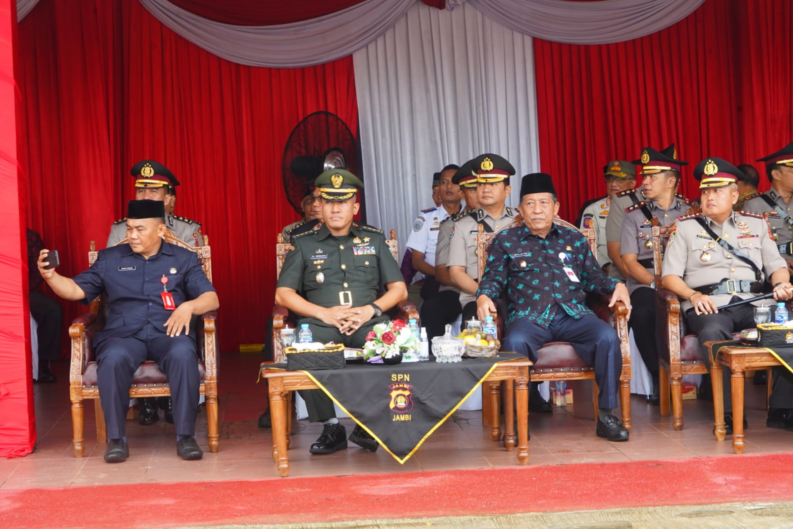 Kasrem 042/Gapu pada kesempatan tersebut menyampaikan kehadiran saya di sini, tentunya wujud sinergitas dan soliditas antara TNI dan Polri, Pemerintah Daerah serta elemen bangsa yang hadir di Lapangan SPN ini,” ujarnya.
