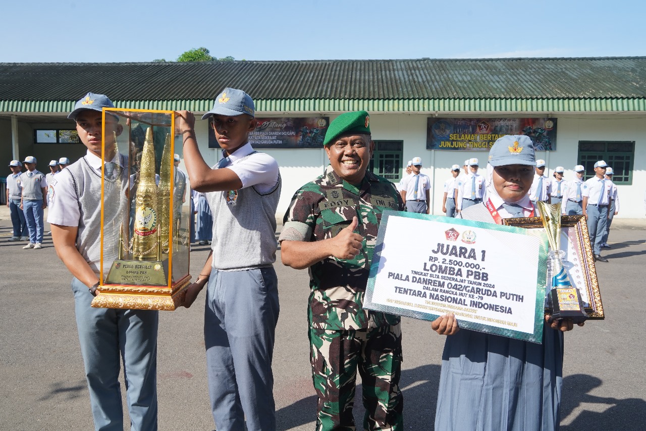 Kasrem 042/Gapu mengucapkan “Terimakasih kepada seluruh siswa, guru dan sekolah yang telah ikut berpartisipasi pada lomba PBB ini, kami bangga melihat antusiasme yang sangat tinggi dari sekolah, adik-adik peserta lomba yang sudah tampil semangat. Kedepan kegiatan seperti ini akan rutin dilaksanakan setiap tahun. Selamat kepada pemenang,” ujar Kasrem.